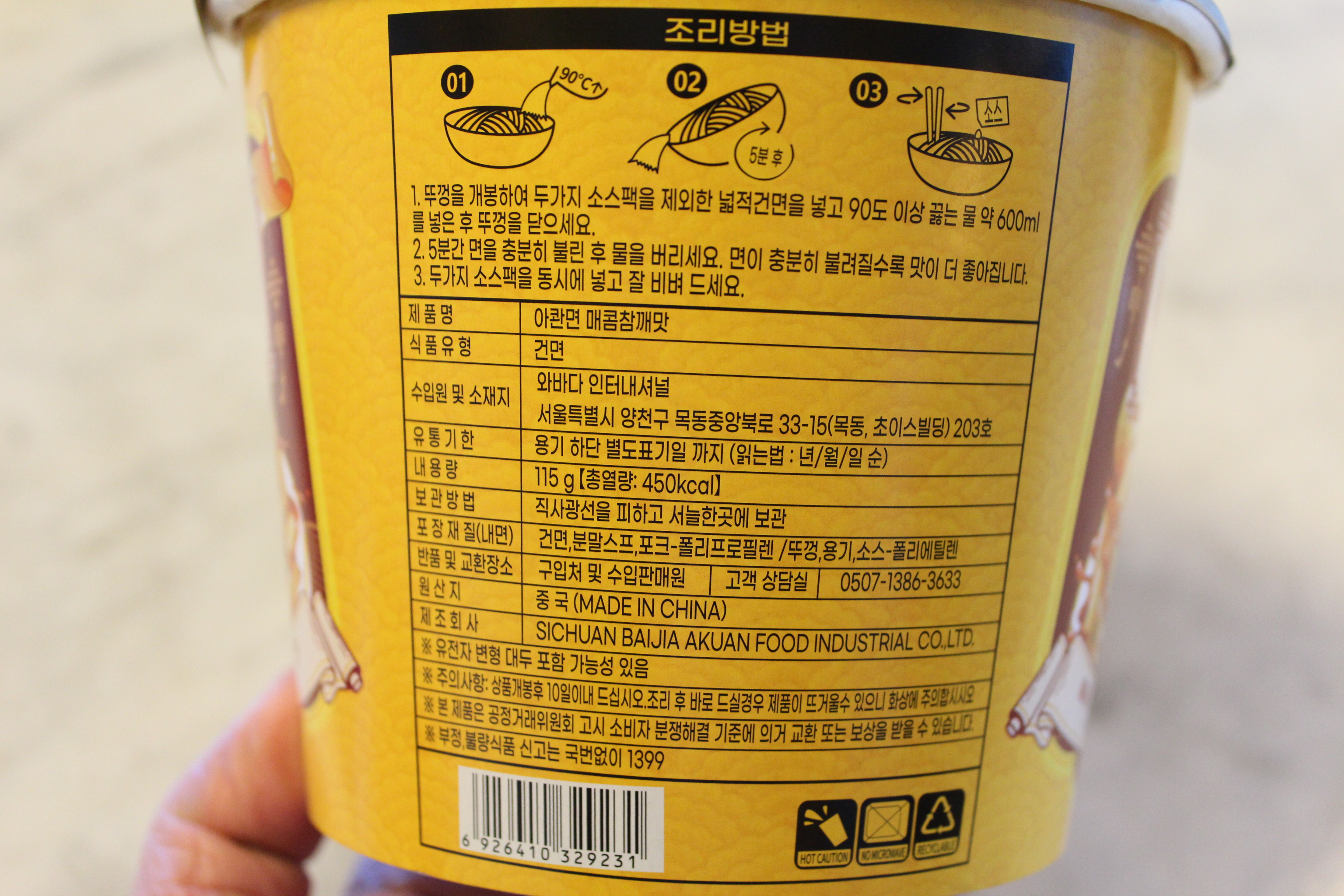 - 중국 컵라면 '바이지아 아콴면 매콤 참깨 맛' -